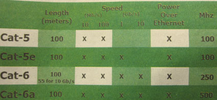 И,конечно,же сам кабель, в данном случае Витая пара. Витую пару выпускают в 3 категориях: Cat-5, Cat-5e и Cat-6 а также для наружнего и внутреннего исполнения.