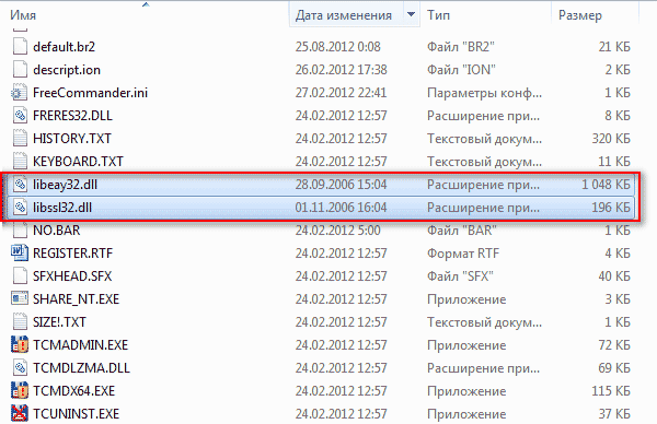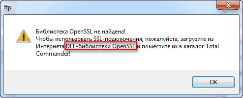 Чтож,придется вставлять эти библиотечки в корневую папку total commander,скачать: 1.0.1g 32бит. или 0.9.8d 32бит.-старые ,распаковываем и кидаем их в папку командера,