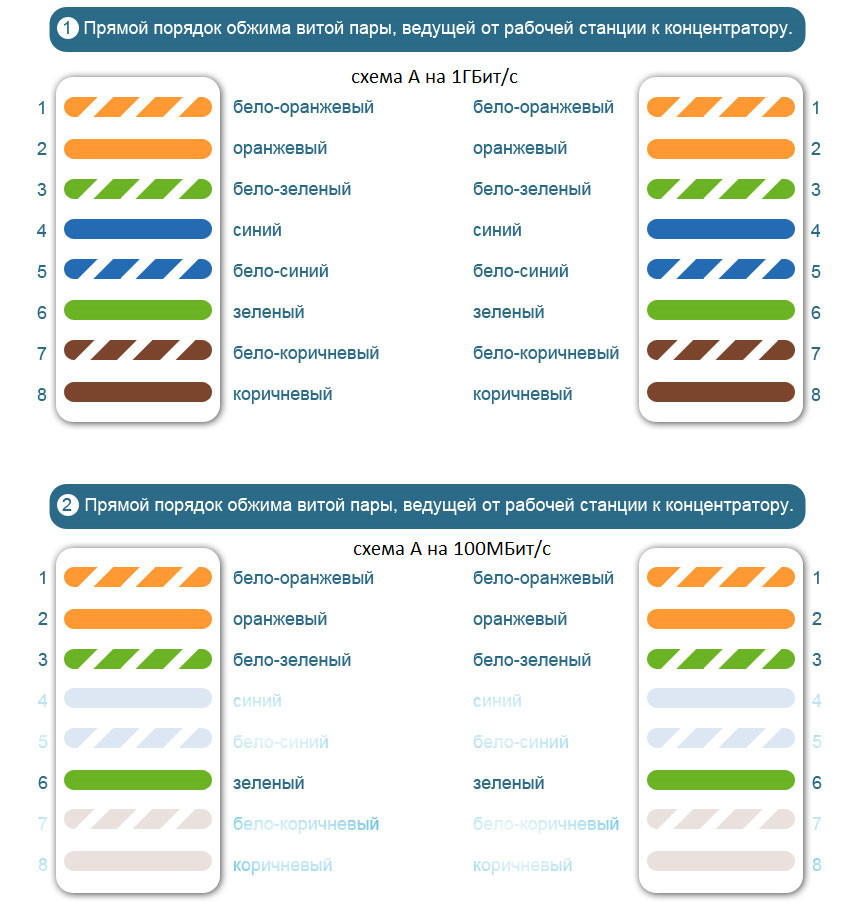 Итак, мы определились с подручными средствами и расходными материалами, самое время выбрать вариант обжимки сетевого кабеля. Вариантов может быть несколько, точнее 3.