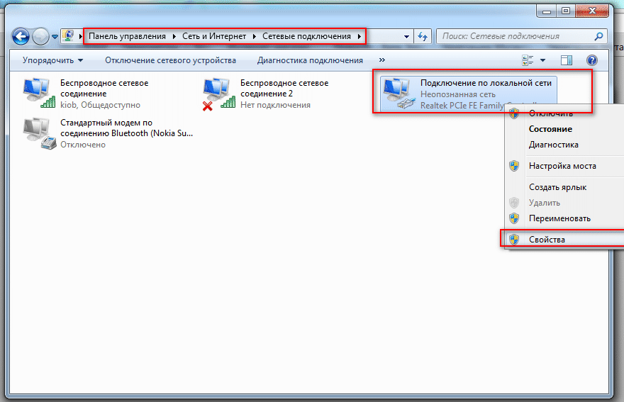 Этот вариант подойдет, если соединение компьютера в сети происходит через сетевую карту Вашего компьютера и Хаб/Свитч. Рассмотрим последовательность действий:
